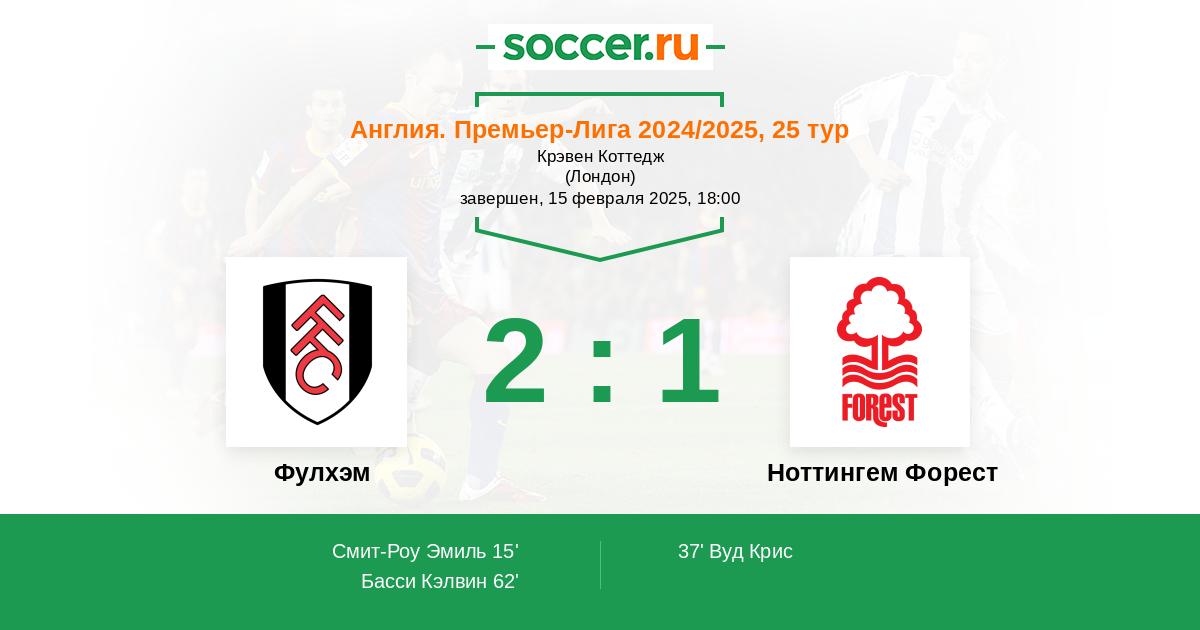 Новости матча Фулхэм против Ноттингем Форест