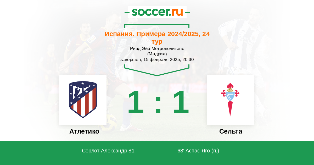 Атлетико - Сельта ! " Матрсники " прекрасно понимают весь расклад среди лидеров и вряд ли будут играть дома в осторожный футбол . Гости конечно же могут всегда ответить голом .