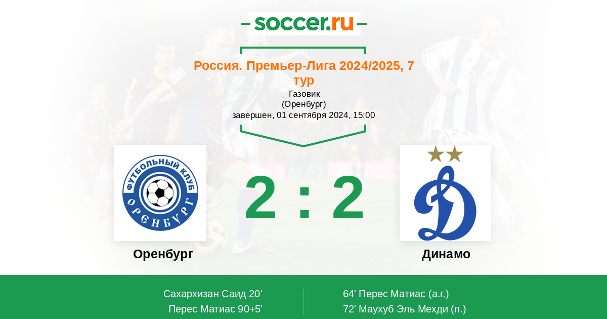Новости матча Оренбург против Динамо