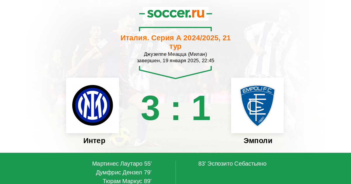 Новости матча Интер против Эмполи