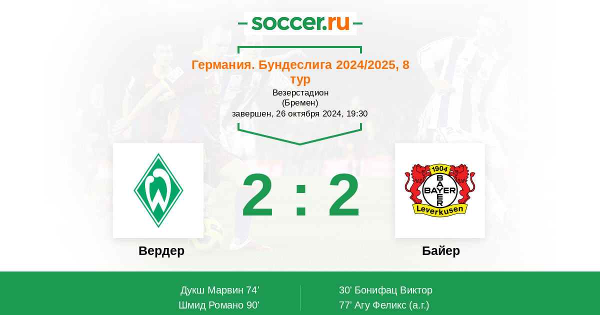 Новости матча Вердер против Байер
