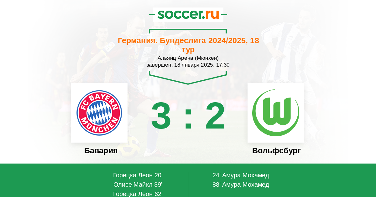 Новости матча Бавария против Вольфсбург