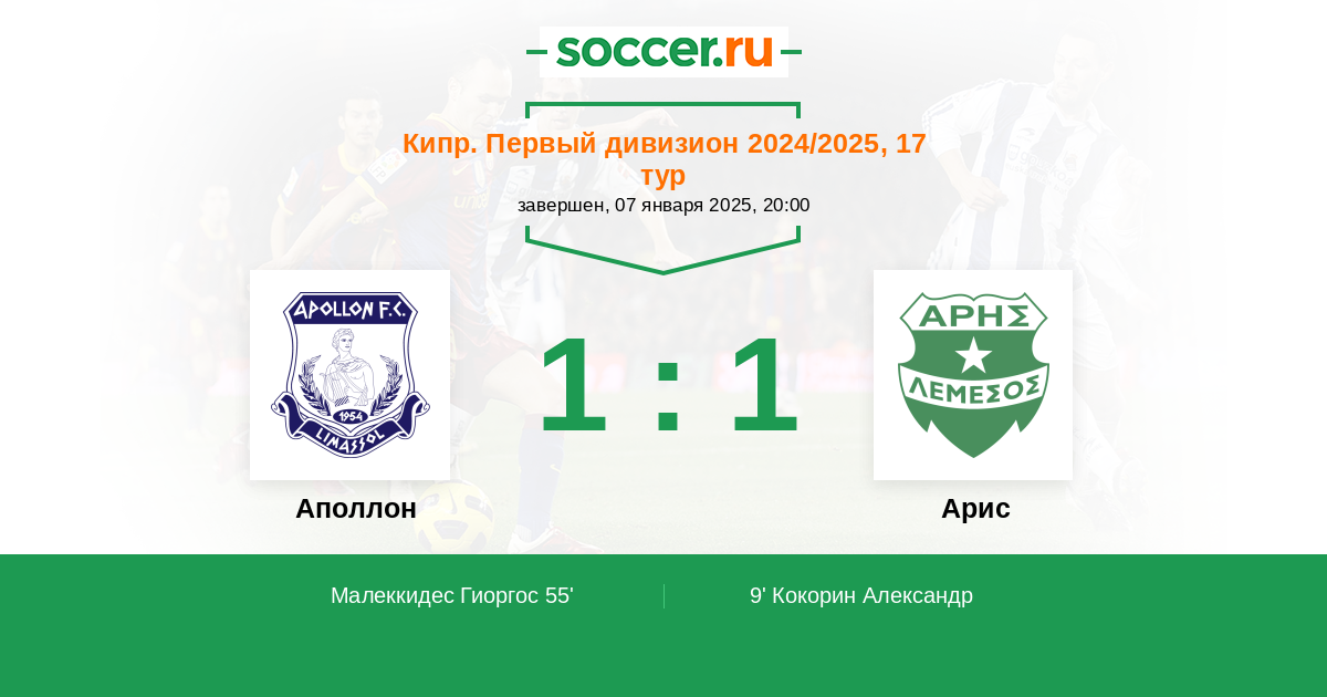 Новости матча Аполлон против Арис