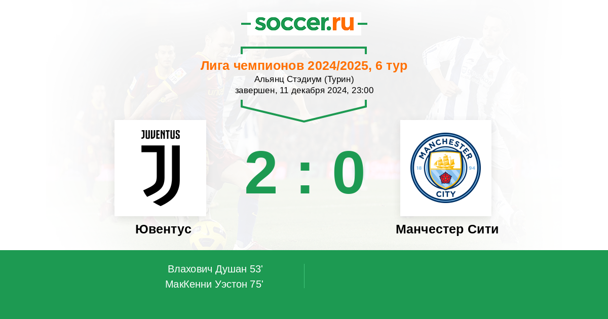 "Ювентус" все живет прошлым, в прошлом сезоне команда демонстрировала сверхоборонительный футбол, по этому поводу в Италии появилась шутка в прессе: "Если у вас бессонница, просто посмотрите игру Юве, сразу уснете". "Старая сеньора" — рекордсмен по ничейным результатам в топ-чемпионатах, вероятно, что такой стиль игры будет и сегодня в игре против "Сити". "Горожане" едут в Турин в качестве фаворита. С такой игрой "Ювентус" продолжает спускаться вниз по турниру, побед нет, как итог перед игрой с "Сити" 22 место и 8 очков.