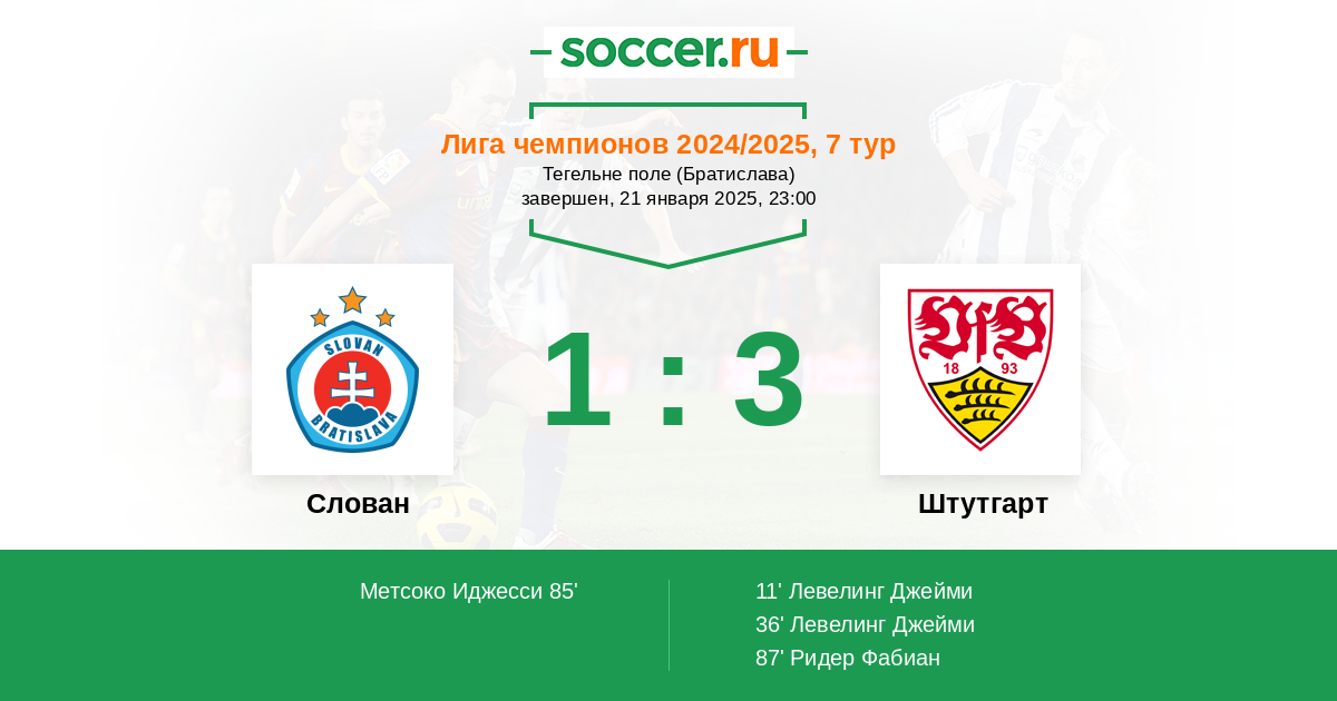 Слован - Штутгарт ! Гости , чрезвычайно мотивированны на этот матч , ведь они видят над собой черту , которую надо преодолеть , хозяевам остаётся постараться погромче , хлопнуть дома " дверью ". ТБ .