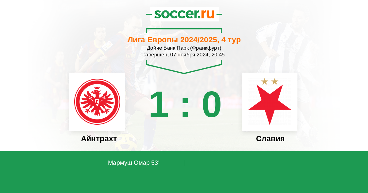 Ничего не знаю- ни о Айнтрахте, ни о Славии. Довериться можно, только турнирной таблице и последним результатам команд в ЛЕ, и в своих чемпионатах... Думаю, преимущество своего поля поможет Айнтрахту...