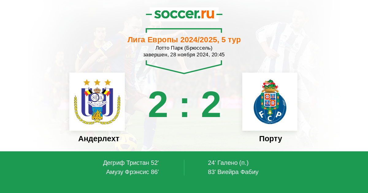 Андерлехт - Порту ! Обе команды если можно так сказать , выступают не логично - хозяева среди лидеров , гости где то в низу устроились . Надеюсь на голевой матч .