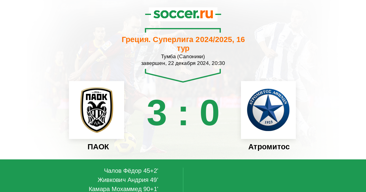 Новости матча ПАОК против Атромитос