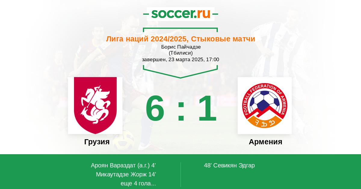 Все знали, что проиграют. Этот цикл сб.Армении не нужен, хотя и при желании сыграть лучше поражения всё же было - бы не избежать: сб.Грузии на ходу , а сб.Армении надо создавать заново.