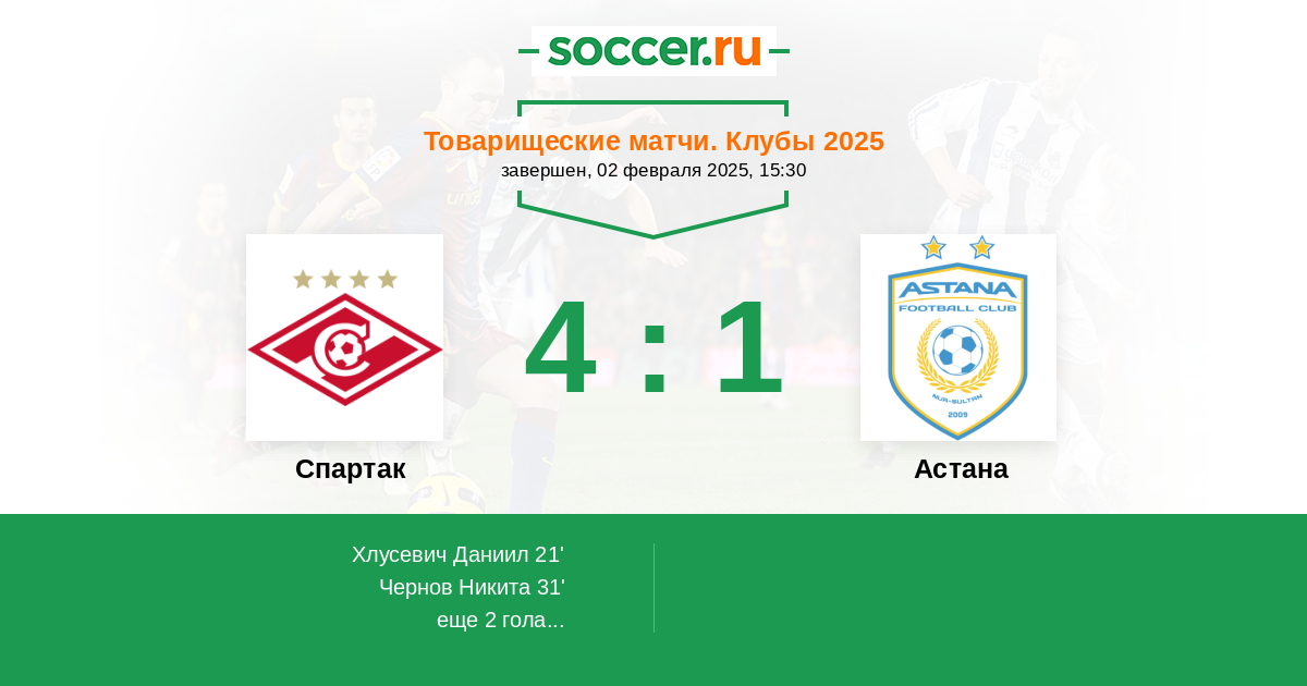 Новости матча Спартак против Астана