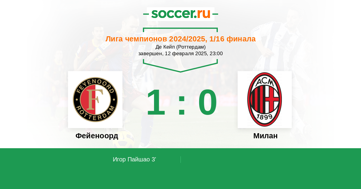 Новости матча Фейеноорд против Милан