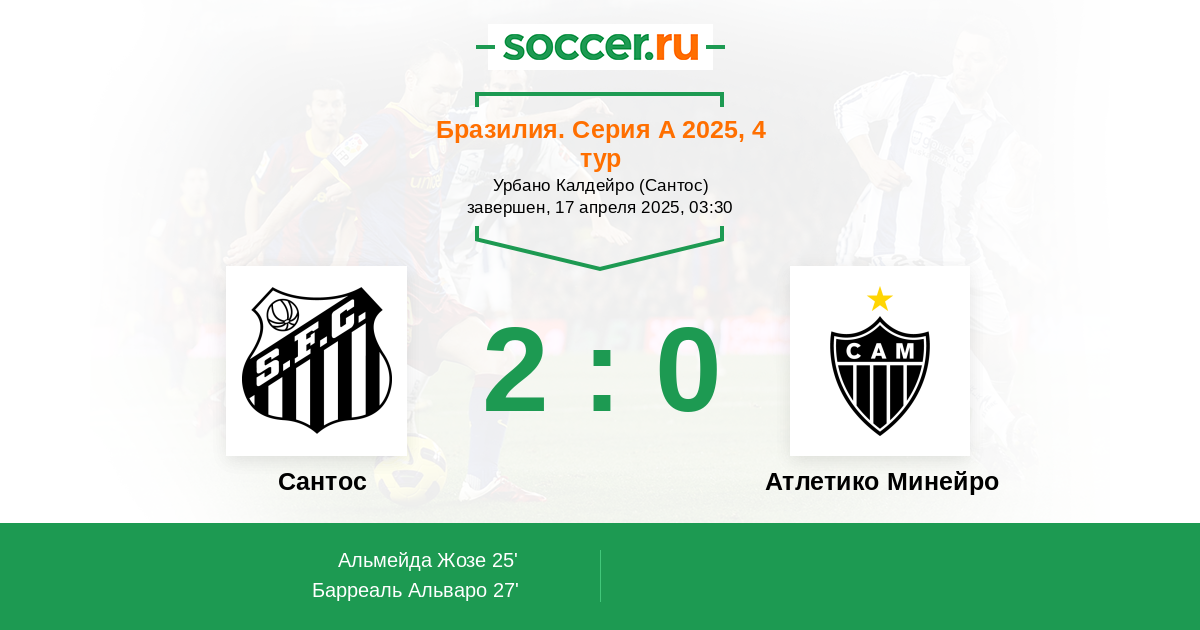 Новости матча Сантос против Атлетико Минейро