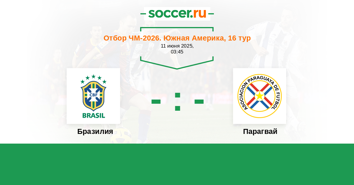 У Бразилии с Карло Анчелотти не получилось идеального старта, сыграв нулевую ничью в гостях с Эквадором. Не лучший результат, но и хороших моментов хватало — особенно это касалось эффективной обороны. В домашней игре с Парагваем этого уже будет мало: от "пентакампеонов" ждут содержательной игры в нападении, победы и оформления выхода на ЧМ-2026. В этом должен помочь вернувшийся после дисквалификации Рафинья, проведший отличный сезон за "Барселону".