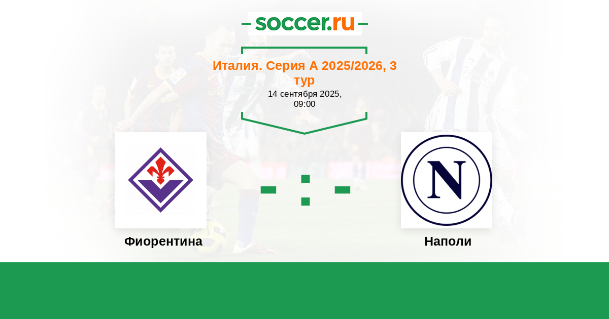 У Фиорентины сейчас не очень хорошие времена – та команда, которая много забивала, пока далеко, в активе лишь один мяч. У Наполи есть кадровые проблемы, но скамейка тоже есть. Игру стоит посмотреть. Победа гостей.