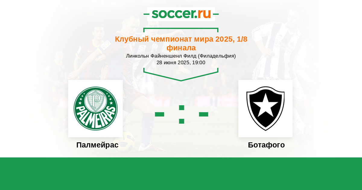 Палмейрас - Ботафого ! Команды прекрасно знают стиль игры друг друга и что то подсказывает ,что вряд ли будет сильно открытый футбол , а скорее вязкий и жёсткий . Предположу ничью . Х.