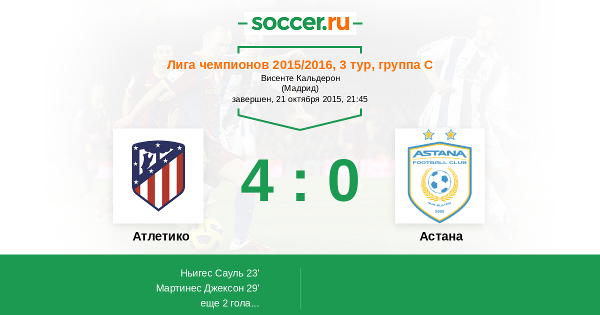 Новости матча Атлетико против Астана