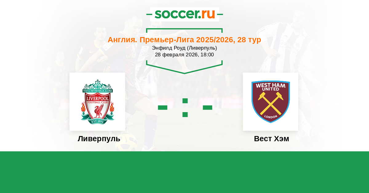 Оповещения матча Ливерпуль против Вест Хэм