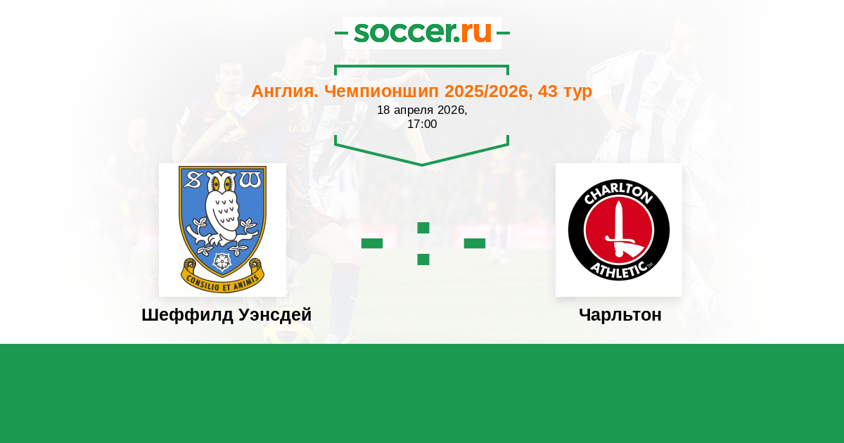 Оповещения матча Шеффилд Уэнсдей против Чарльтон