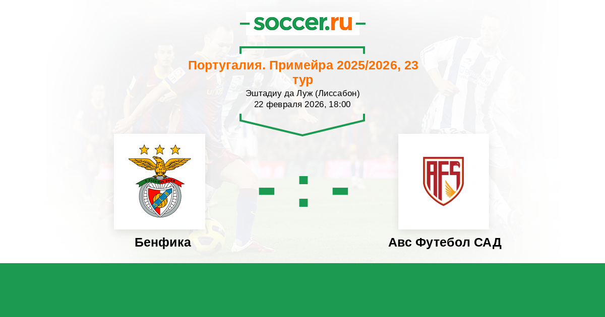 Оповещения матча Бенфика против Авс Футебол САД