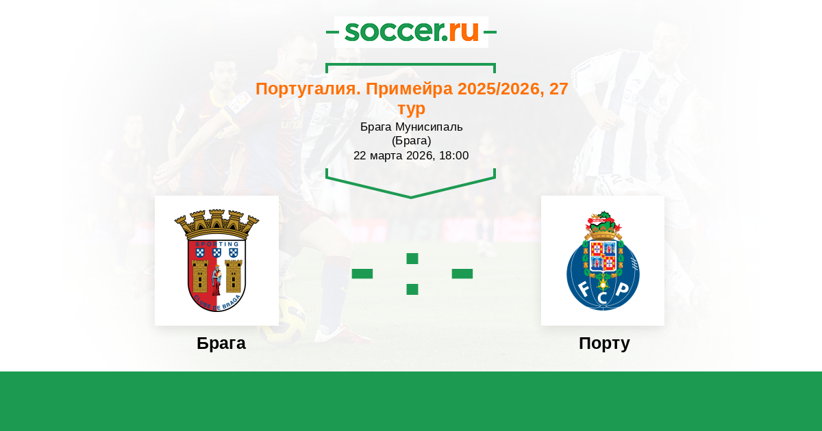 Оповещения матча Брага против Порту