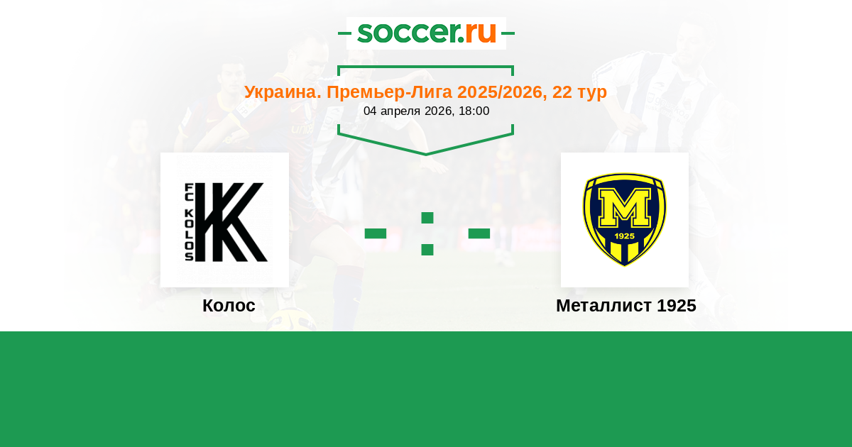 Оповещения матча Колос против Металлист 1925