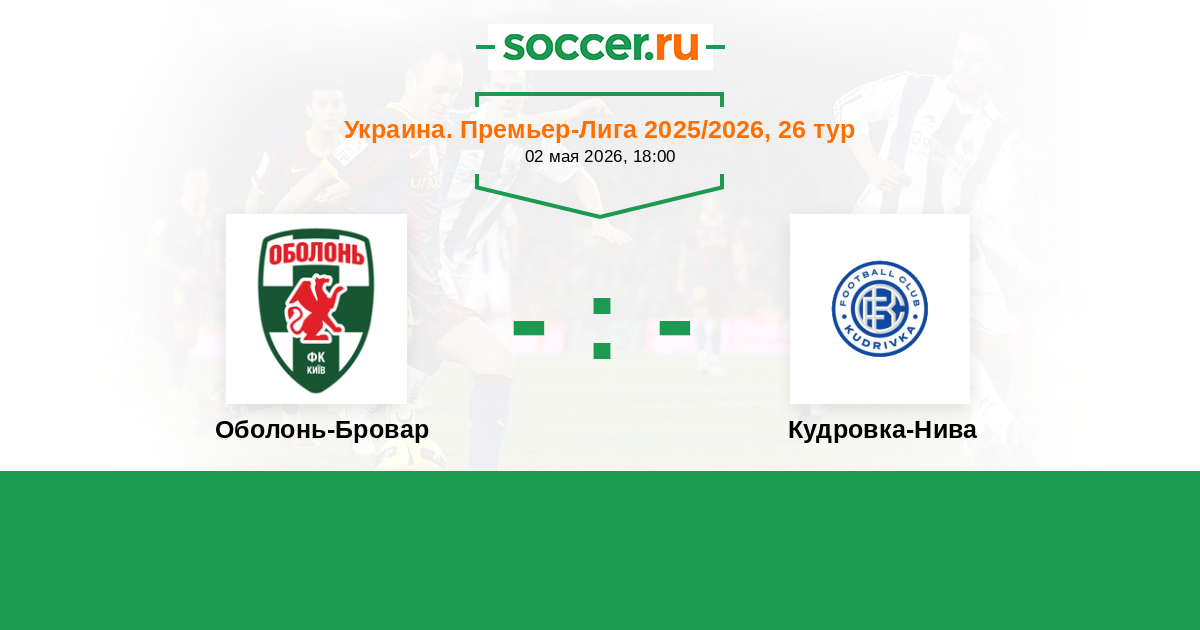 Оповещения матча Оболонь-Бровар против Кудровка-Нива