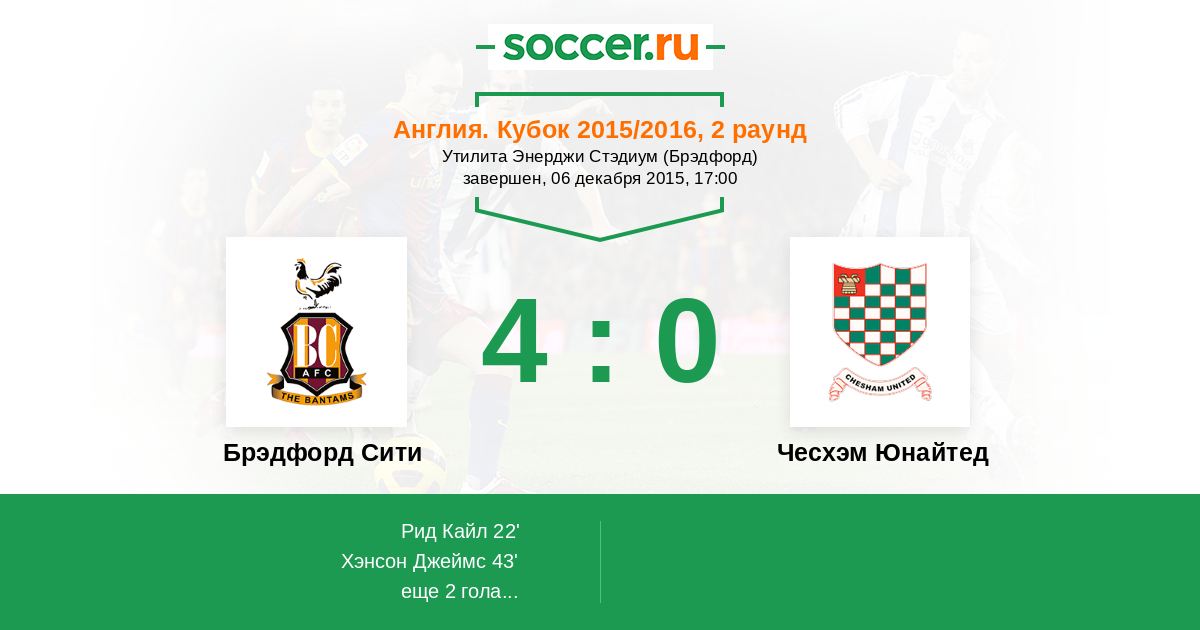 43' (2:0) Хэнсон Джеймс (9) (Эванс Ли (4))