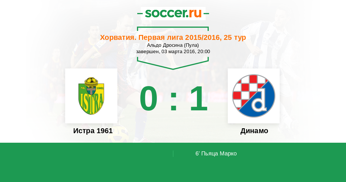 6' (0:1) Пьяца Марко (20)