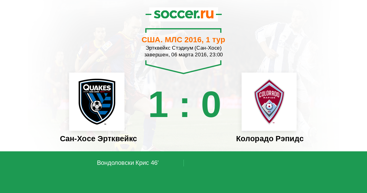 Гол46' (1:0) Вондоловски Крис (8) (Кинтеро Альберто (91))