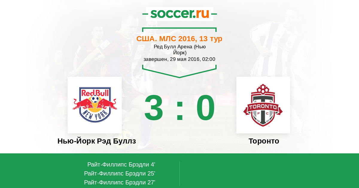 27' (3:0) Райт-Филлипс Брэдли (99) (Грелла Майк (13))