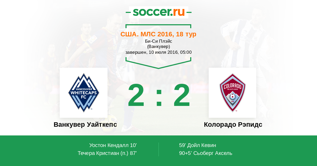 10' (1:0) Уостон Кендалл (4) (Боланьос Кристиан (7))