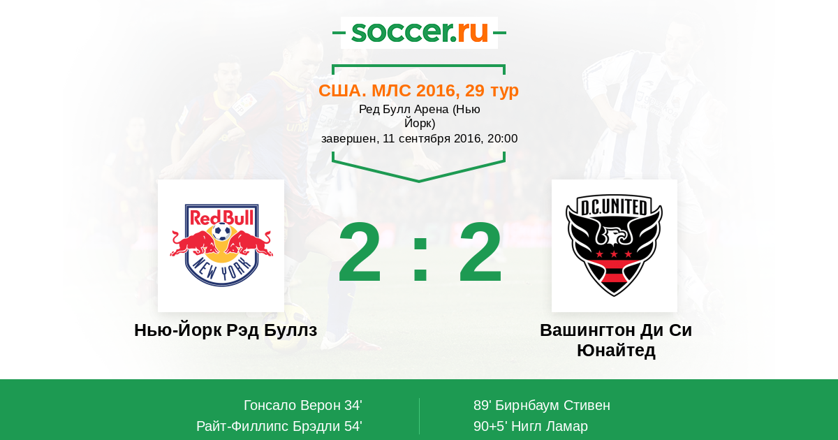 54' (2:0) Райт-Филлипс Брэдли (99) (Ройер Даниэль (77))