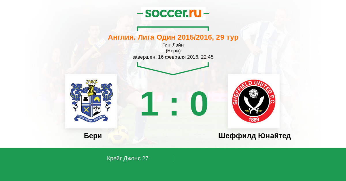 27' (1:0) Крейг Джонс (14) (Кларк Леон (9))