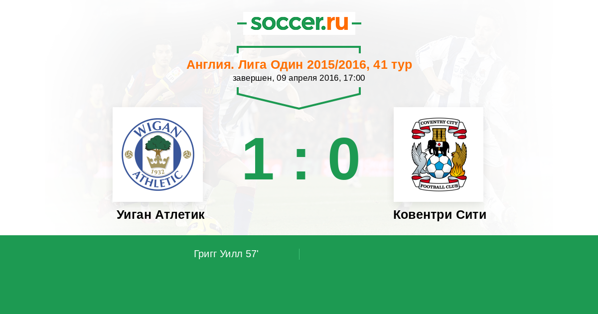 57' (1:0) Григг Уилл (9) (Уорнок Стивен (22))