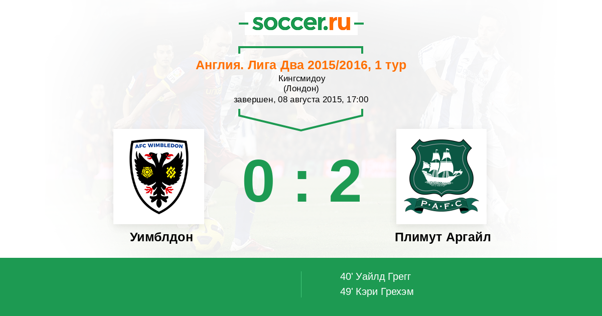 40' (0:1) Уайлд Грегг (11) (Джервис Джейк (14))