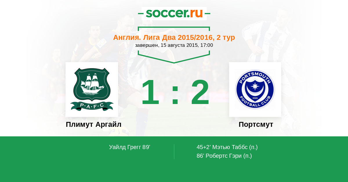45+2’ 0:1(П) Мэтью Таббс