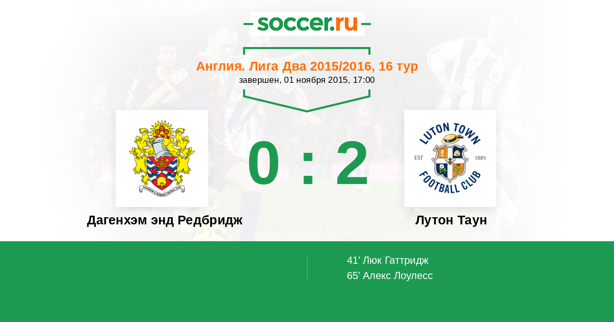 41' (0:1) Люк Гаттридж (21) (Алекс Лоулесс (7))