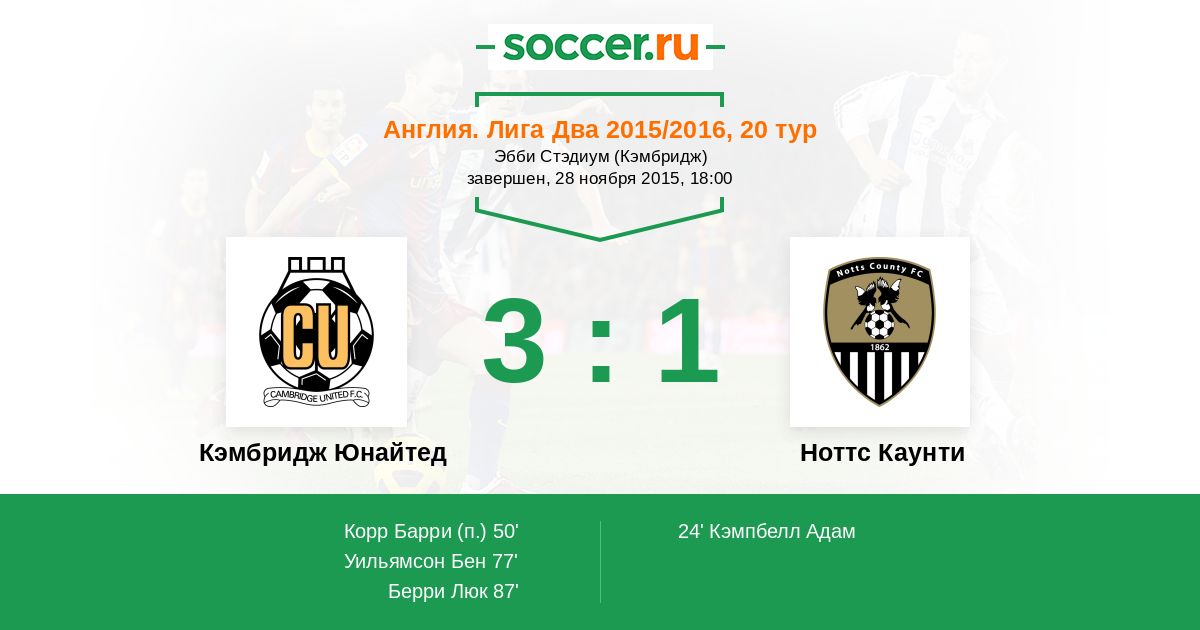 24' (0:1) Кэмпбелл Адам (24)