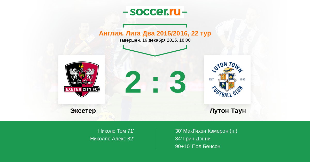 90+10’ 2:3 Пол Бенсон