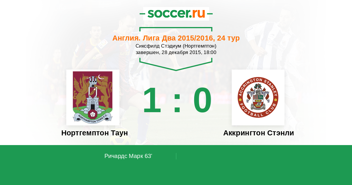 63' (1:0) Ричардс Марк (9) (Холмс Рики)