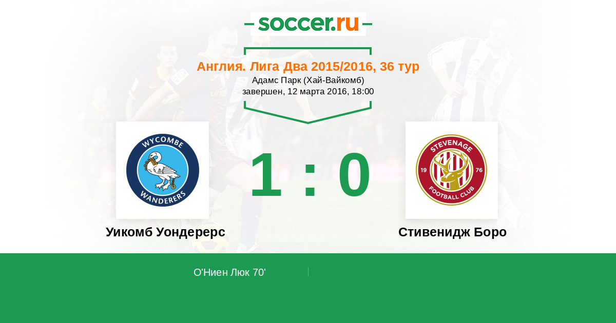70' (1:0) О'Ниен Люк (20)