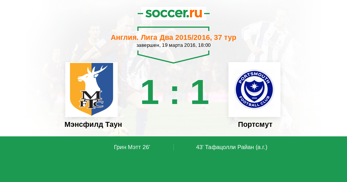43' (1:1) Автогол Тафацолли Райан (15)