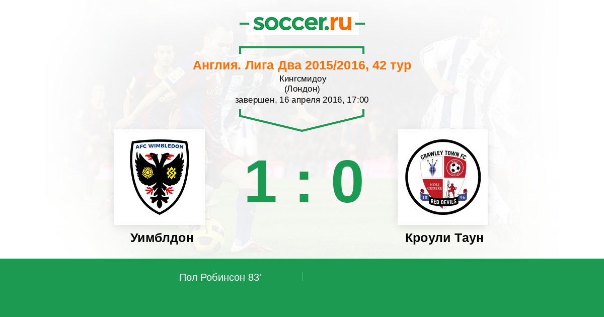 83' (1:0) Пол Робинсон (6) (Фуллер Барри (2))