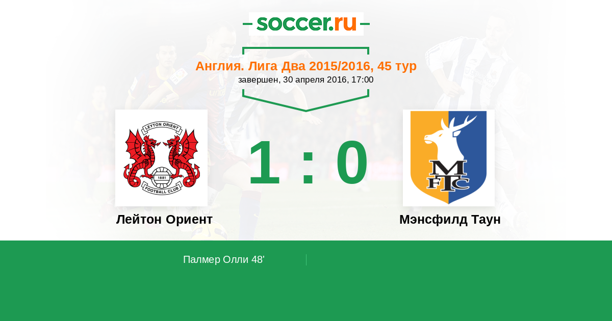 48' (1:0) Палмер Олли (9) (Джеймс Ллойд (8))
