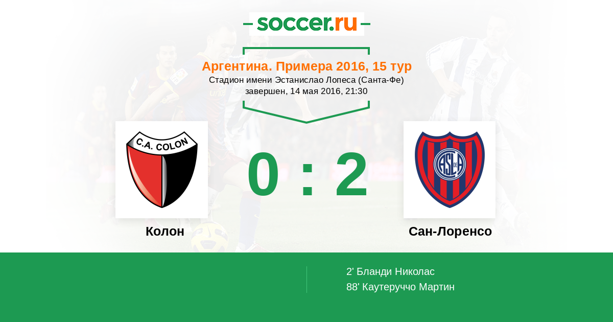 88' (0:2) Каутеруччо Мартин (Бланко Себастьян (23))