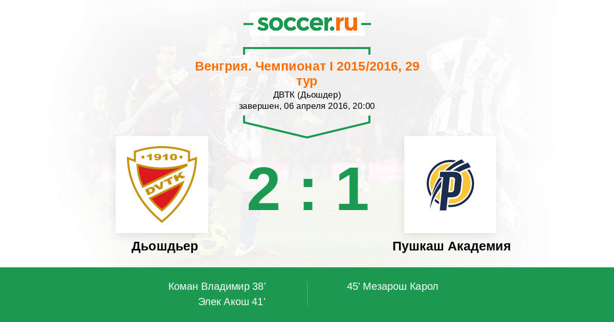 41' (2:0) Элек Акош (25)