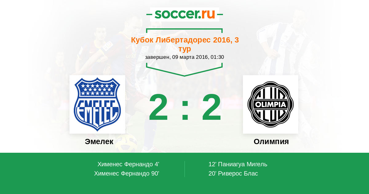 4' (1:0) Хименес Фернандо (24) (Гайбор Фернандо (10))
