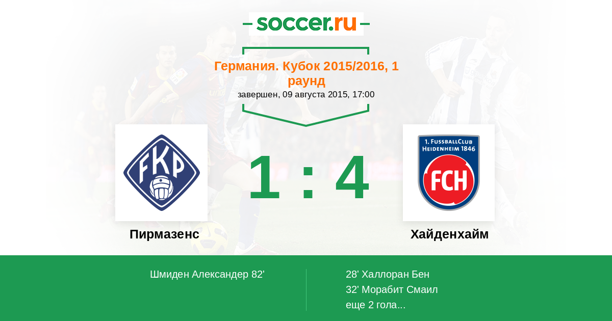 82' (1:4) Шмиден Александер (11) (Райнерт Себастьян (5))