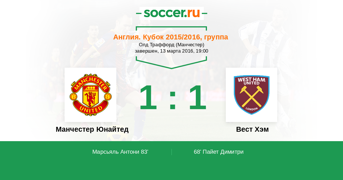 83' (1:1) Марсьяль Антони (9) (Эррера Андер (21))