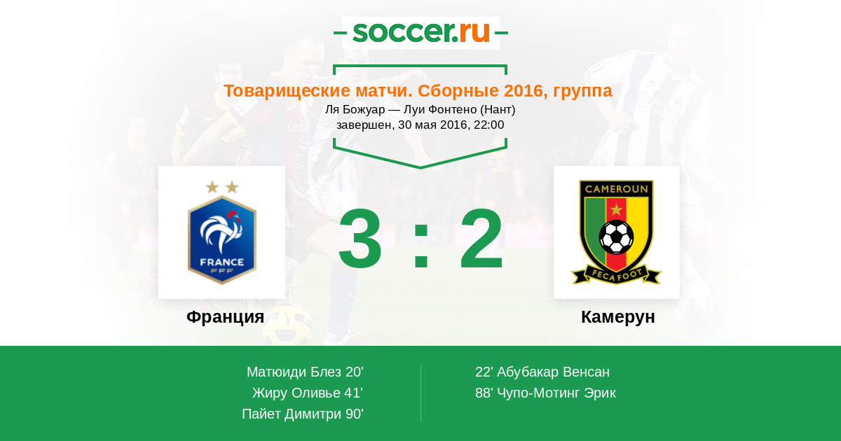 88' (2:2) Чупо-Мотинг Эрик (13) (Абанг Анатоль Бертран (8))